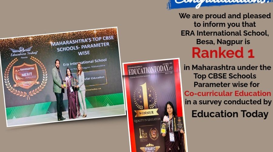 We are also proud and pleased to inform you that ERA International School, Besa Nagpur is Ranked -1 in Maharashtra under the TOP CBSE Schools Parameter wise for Co- curricular Education in a Survey Conducted by EDUCATION TODAY.